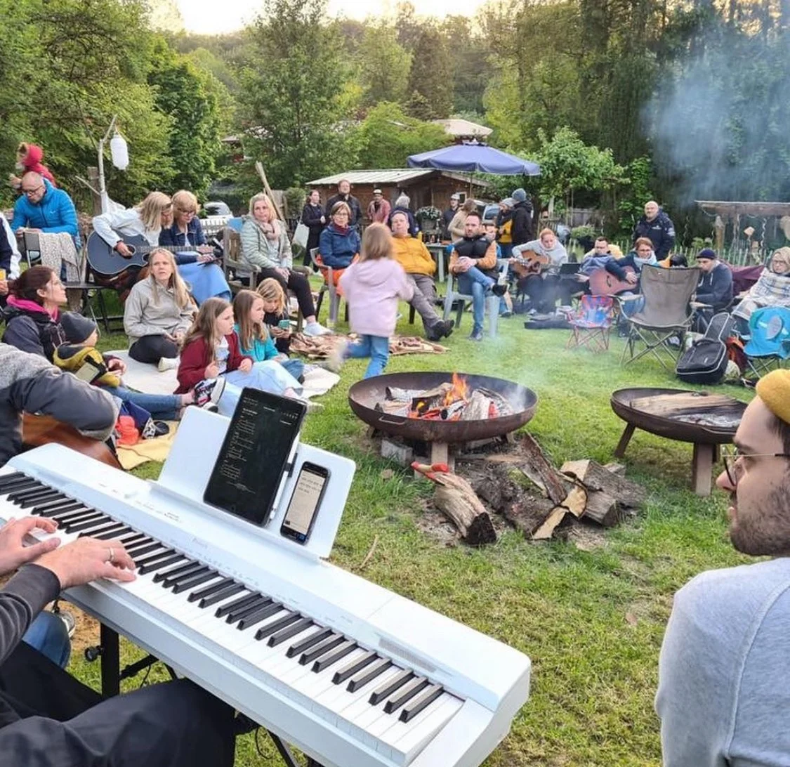 Wir singen und spielen gemeinsam Lagerfeuersongs am Lagerfeuer. Akkorde und Texte bereiten wir vor und stellen sie euch online zur Verfügung- kümmert euch vorab, auf dem Gelände gibt es keine Möglichkeit für Internet oder Telefonie. Bringt jemanden mit und sorgt selbst für Sitzmöglichkeiten (Decke, Stühle). Essen & Trinken gibt es gegen Spende. Wir freuen uns auf euch!